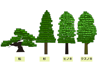 『クスノキ』…「楠」とか「樟」と書くクスノキには、その字の通り、「樟脳成分」が含まれています。古くから衣類などの防虫・防カビ材をして用いられてきました。